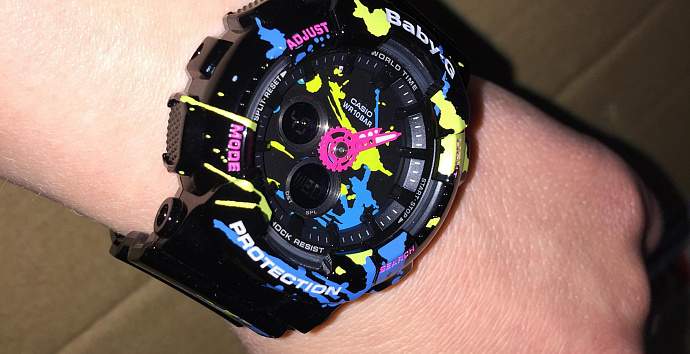 Компания Сasio BABY-G представляет новую коллекцию Splatter Pattern на базе модели  BA-120 ,которые отображают современное уличное искусство. Коллекция представлена в черном и белом цветах с имитацией брызг краски на корпус, ремешок и циферблат.Такая раскраска часов придаст вашему образу игривое настроение.