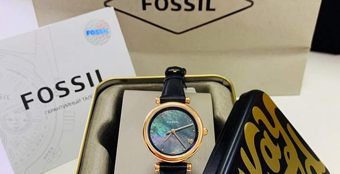 Женские наручные часы Fossil ES4504 из коллекции Carlie Mini Three-Hand Black Leather Watch.