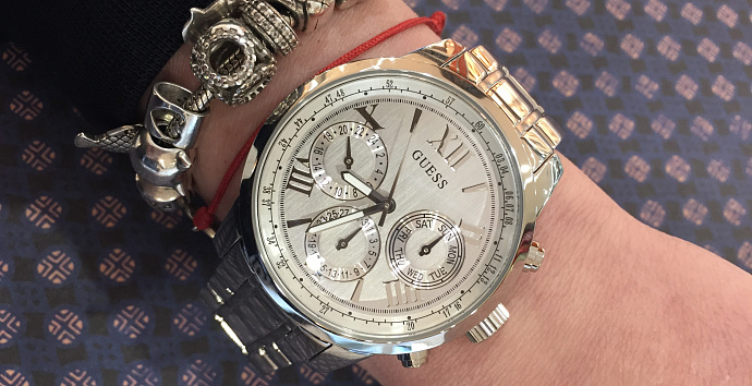 Посмотрев и примерив большое разнообразие брендов и моделей, побольше и поменьше, с камнями и без, остановила свой выбор на GUESS W0330L3. Модель достаточно крупная, размер корпуса 42 мм, но легче чем подобные модели других брендов. Несмотря на тонкое запястье смотрятся на руке гармонично. Часы выбирала более классические, без камней и цветных дисплеев. Данная модель универсальна и подходит под любой стиль в одежде. Покупкой осталась довольна.