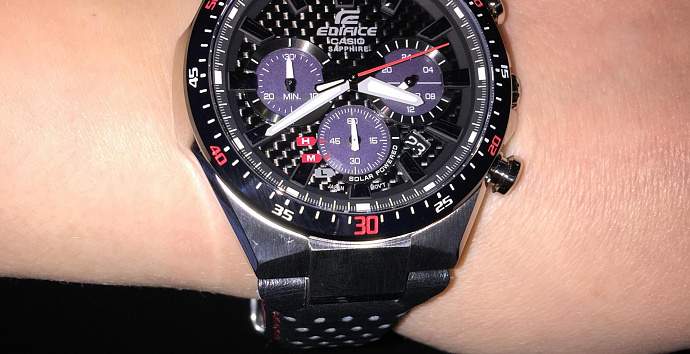 Стильный дизайн, сапфировое стекло, солнечный аккумулятор, карбоновый циферблат! Достойные часы! Окружающие люди оценили по достоинству мой выбор!