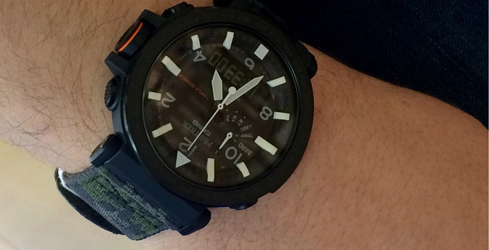 Функция перемещения стрелок. Нажатие кнопки обеспечит перемещение стрелок в такое положение, которое позволит легко считать информацию, например дату или показатели секундомера, с маленьких цифровых дисплеев.