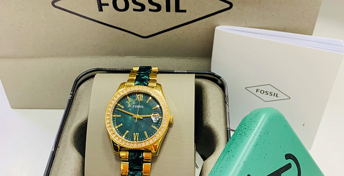 Зеленый циферблат с метками в виде штрихов и римских цифр.